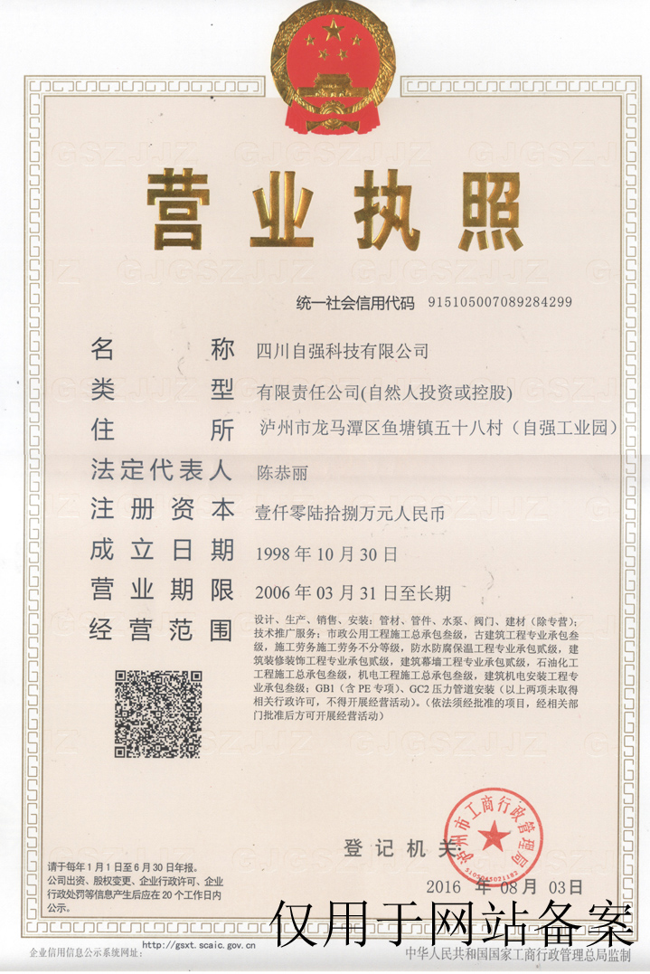■公司目前所屬企業(yè)有四川自強(qiáng)科技有限公司高新區(qū)分公司(管材及管件加工)、瀘州市龍馬潭區(qū)自強(qiáng)花崗石廠(chǎng)、四川自強(qiáng)科技有限公司營(yíng)山縣分公司、四川自強(qiáng)科技有限公司赤水分公司,對(duì)外投資四川龍港建材有限責(zé)任公司、可麗雅美容整形醫(yī)院。